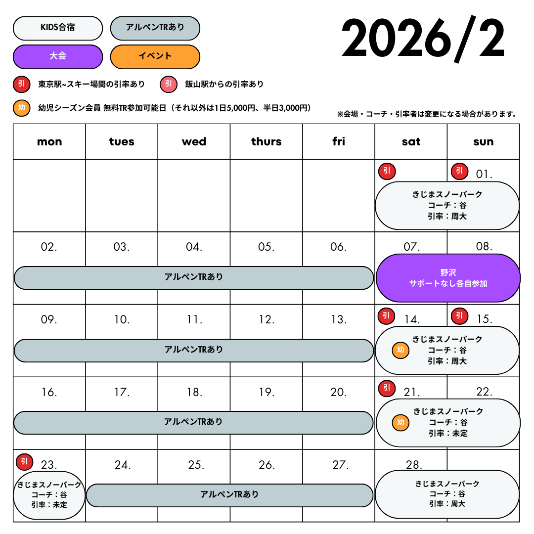 ※帯同日は全体練習(主に土日)のみです。(全体練習の日でも帯同がない場合があります。)⇨詳細は上部カレンダーをご確認ください。