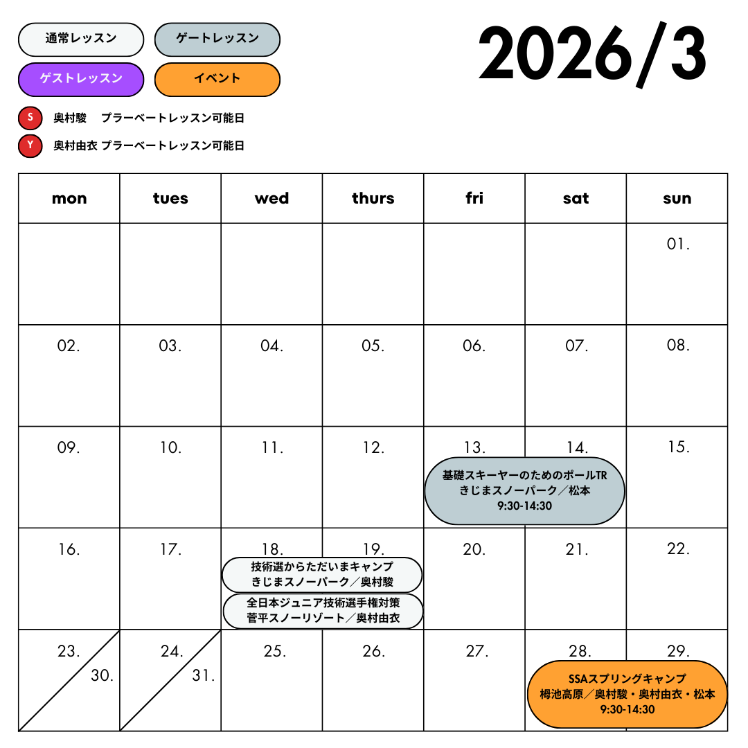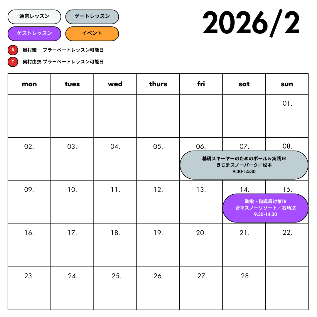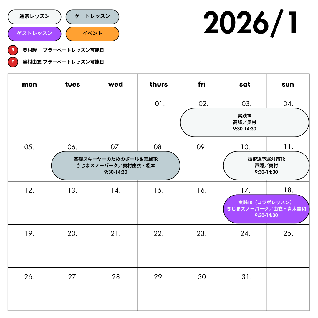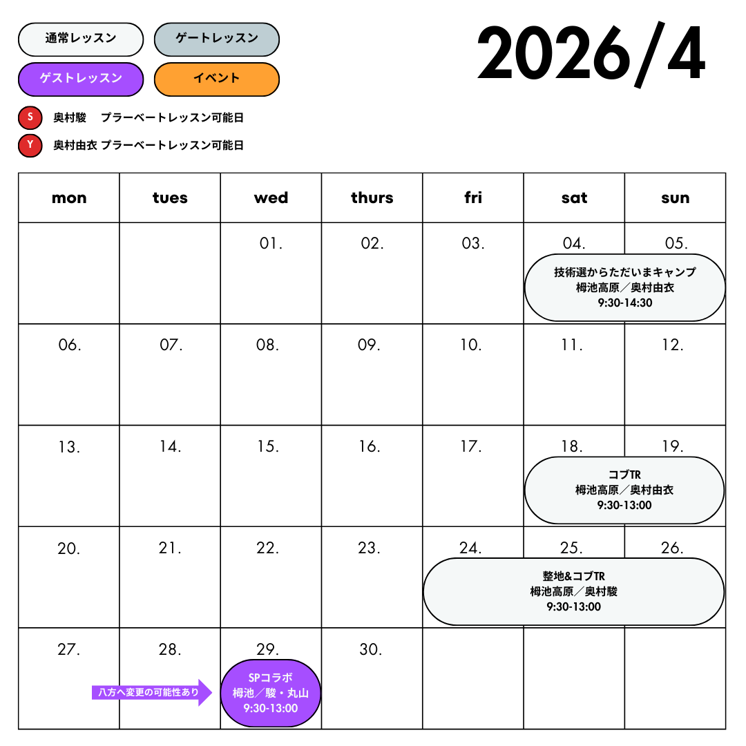 ※レッスン日程や場所は変更になる場合があります。予めご了承ください。